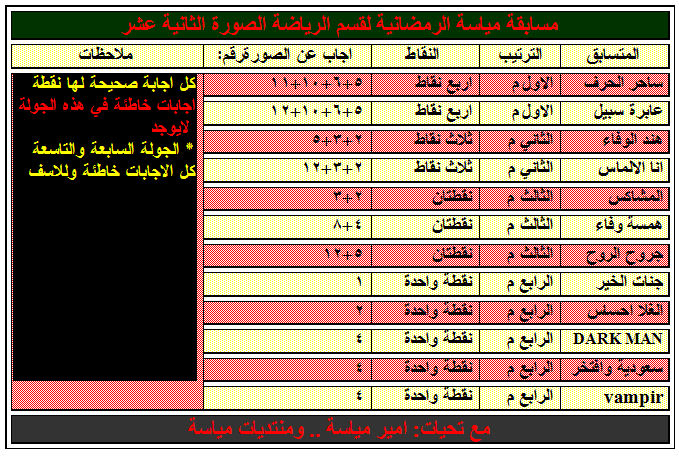 عموما مبروك مرة ثانيةللفائزين وكل سنة وانتم طيبينشكرا لكم على الجهود