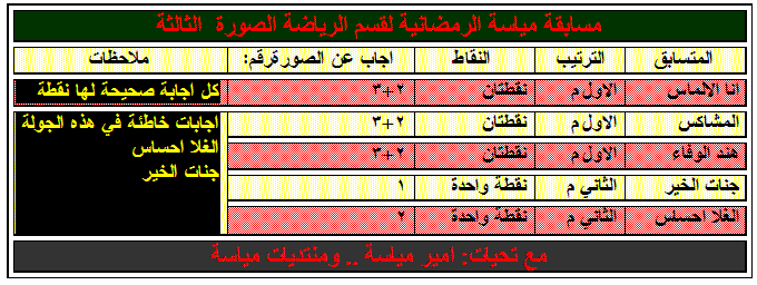 اليكم نتائج المسابقة الرمضانية الرياضية برعاية امير مياسة