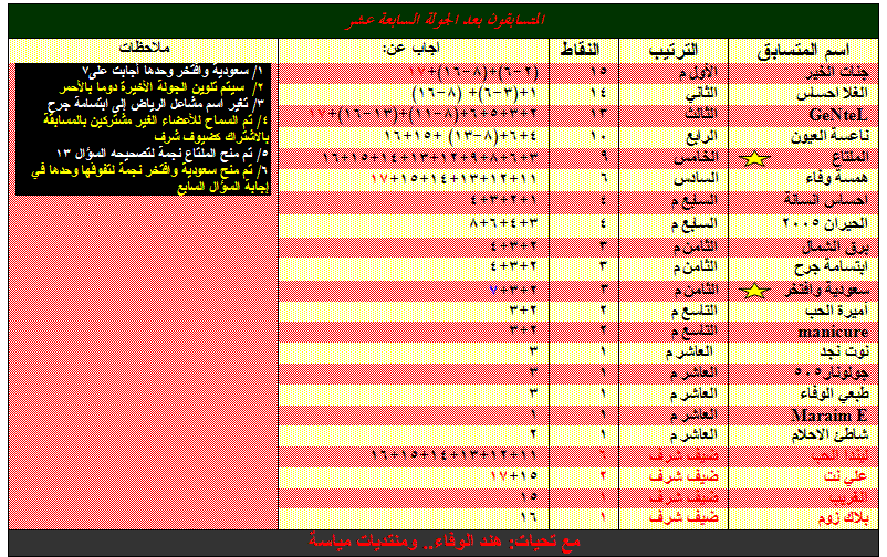 اسماء الطلبة ^_^ الاعضاء الذين اجابوا على السؤال 17 "معنى لواقح " كما وردت باية 22 من سورة الحجر