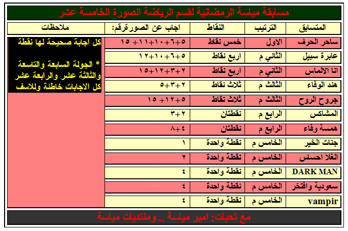 عموما مبروك مرة ثانيةللفائزين وكل سنة وانتم طيبينشكرا لكم على الجهود