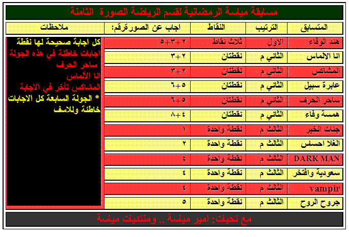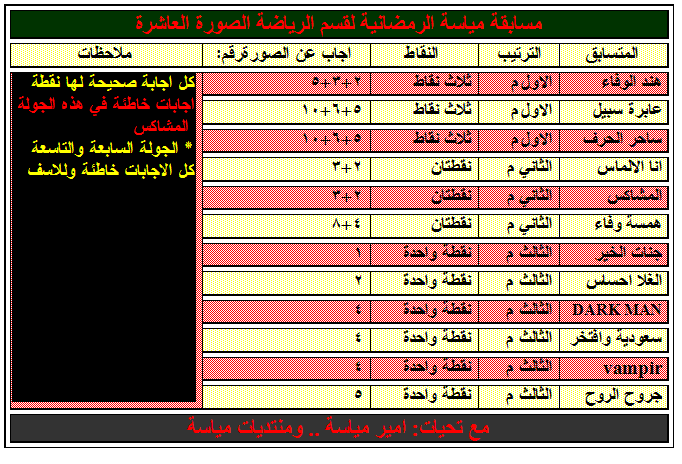 اليكم نتائج المسابقة الرمضانية الرياضية برعاية امير مياسة