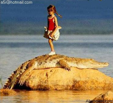 والله اتوقع انو ميت مو معقوووووووووول تمساح يترك سحليه توقف على ظهره والله كان قطعها
