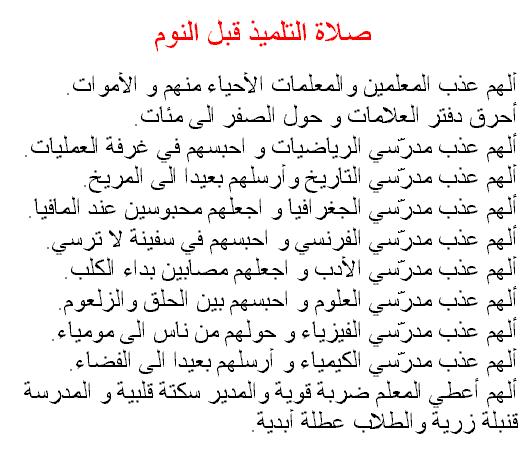تعالوا شفوا ايه الى بيتمناه التلاميذ ,بدل ما يصلوا لربنا يدعوا على المدرسين