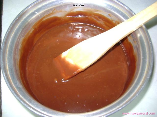 3- فوق طبقة البسكويت صبي جزء من خليط الكاكاو وكرري عملية تكوين طبقة البسكويت ومن ثم صبي عليه جزء من الخليط ولاخر طبقة قومي بصف طبقة بسكويت اخيرة واختمي طبقك بصب ماتبقى من خليط الكاكاو على طبقة البسكويت وضعيها في الثلاجه حتى تبرد وتقدم مع القهوة العربية .